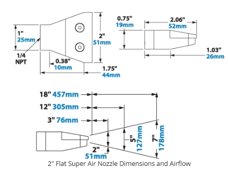 Super Flat Air Nozzle . 1/4" BSP. Zinc Alloy. Force 624g.