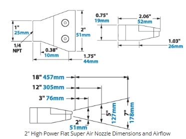 High Power Flat Air Nozzle. 1/4" BSP. Zinc Alloy. Force 998g.