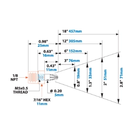 Pico Round Super Air Nozzle. M5. 316 Stainless Steel. Force 142g.