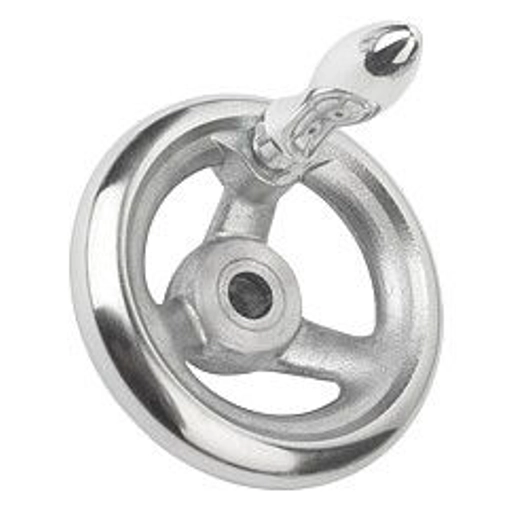 Handwheel. Revolving Handle. 10mm H7 Reamed Hole. 80mm Overall Diameter. Aluminium.