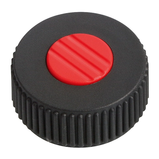 Knurled Knob. M5x10mm Steel Thread. 40mm Grip Diameter. Red Cap.