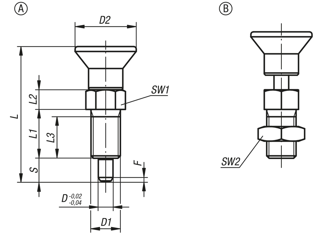 "short_description": "<div id=\"category-description-short-1\">\r\n<div style=\"text-align: left;\">\r\n<p><strong>Product Description:<\/strong><br \/>\r\nIndexing plungers are used to prevent any change in locking position due to lateral forces. A new locking position can only be set after the pin has been manually disengaged.<\/p>\r\n\r\n<p><strong>Material<\/strong><br \/>\r\n<strong>Steel version:<\/strong><br \/>\r\nIhreaded sleeve and indexing pin, free-cutting steel.<br \/>\r\n<br \/>\r\n<strong>Stainless steel version:<\/strong><br \/>\r\nThreaded sleeve 1.4305 (AISI 303 equivalent).<br \/>\r\nLocking pin hardened 1.4034 (AISI 420 equivalent).<br \/>\r\nLocking pin not hardened 1.4305 (AISI 303 equivalent).<\/p>\r\n\r\n<p>Mushroom grip. thermoplastic.<\/p>\r\n\r\n<p><strong>Version:<\/strong><br \/>\r\n<strong>Steel version:<\/strong><br \/>\r\nThreaded sleeve black oxidised.<br \/>\r\nIndexing pin hardened, ground and black oxidised.<\/p>\r\n\r\n<p><strong>Stainless steel version:<\/strong><br \/>\r\nThreaded sleeve bright.<br \/>\r\nIndexing pin hardened and ground, bright.<br \/>\r\nIndexing pin not hardened and ground, bright.<br \/>\r\n<br \/>\r\nMushroom grip thermoplastic black gray RAL7021.<\/p>\r\n\r\n<p><strong>Note:<\/strong><br \/>\r\nFor the inch range dimension D1 is in iches, all other dimensions are in mm.<br \/>\r\n <\/p>\r\n<\/div>\r\n\r\n<div class=\"category-desc-drawings\" style=\"display: flex; justify-content: center; flex-wrap: wrap; gap: 20px; margin-top: 20px;\"><img src=\"https:\/\/images.shopcdn.co.uk\/75\/64\/75645d6df4ed0f521b214e594b366232\/1024x1024\/webp\/fit?quality=100&compression=100&t=1763112854\" \/><\/div>\r\n<\/div>",