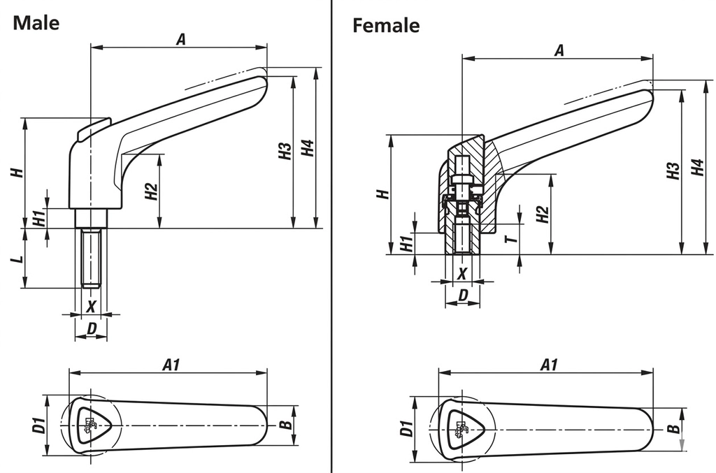 "name": "K0982 - Ergonomic Clamp Levers With Reinforced Plastic Handle Soft Button And Stainless Steel Thread M8-M10",