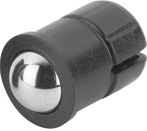 Material: Sleeve thermoplastic. Spring stainless steel. Ball stainless steel or POM. Version: Sleeve black. Ball hardened, bright. Note: The self-locking function of the spring plunger enables simple assembly and secure overhead installation.