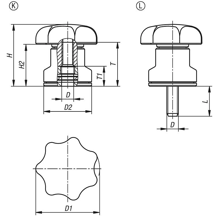 "short_description": "<div id=\"category-description-short-1\">\r\n<div style=\"text-align: left;\"><strong>Product description:<\/strong><br \/>\r\nStar grips with integrated clamping force intensifier can achieve double the clamping force compared to standard star grips.<br \/>\r\n<br \/>\r\nFurthermore, this product can also be used by persons with limited hand strength (e.g. in rehabilitation) to achieve comparable clamping forces with less effort. Less effort is also needed to loosen the star grip.<br \/>\r\n<br \/>\r\nThe increase in clamping force is achieved by the integral needle roller thrust bearing, which generates very low surface friction on a rigid contact surface during clamping. The hardened thrust washers are designed for high clamping forces and the bearing with its high load rating guarantees a long service life.<br \/>\r\n<br \/>\r\nThe clamped component is permanently protected by the large, stationary contact surface. A washer is no longer required.<br \/>\r\n<br \/>\r\nDue to the modular construction many special designs are available.<br \/>\r\n<br \/>\r\n<strong>Material: <\/strong><br \/>\r\nStar grip polyamide thermoplastic, black.<br \/>\r\nSteel parts 5.8 steel or stainless steel 1.4305.<br \/>\r\n<br \/>\r\n<strong>Version: <\/strong><br \/>\r\nMetal parts trivalent blue passivated steel or bright stainless steel.<br \/>\r\nAxial needle bearing with hardened and ground thrust washer.<br \/>\r\n<br \/>\r\n<strong>Application: <\/strong><br \/>\r\nMachine, equipment and plant construction, rehabilitation sector.<br \/>\r\n<br \/>\r\n<strong>Advantages: <\/strong><br \/>\r\nSignificant increase of the clamping force with the same tightening torque.<br \/>\r\nHigh quality axial needle bearing with high load rating and long service life.<br \/>\r\nThe component surface is protected by the stationary lower ring.<br \/>\r\n<br \/>\r\n<strong>Drawing reference: <\/strong><br \/>\r\nForm K: tapped bush<br \/>\r\nForm L: external thread<\/div>\r\n\r\n<div class=\"category-desc-drawings\" style=\"display: flex; justify-content: center; flex-wrap: wrap; gap: 20px; margin-top: 20px;\"><img src=\"https:\/\/images.shopcdn.co.uk\/e4\/ad\/e4ad91210f3fd9f746e76d2d94da4687\/1024x1024\/webp\/fit?quality=100&compression=100&t=1777390075\" \/><\/div>\r\n<\/div>",