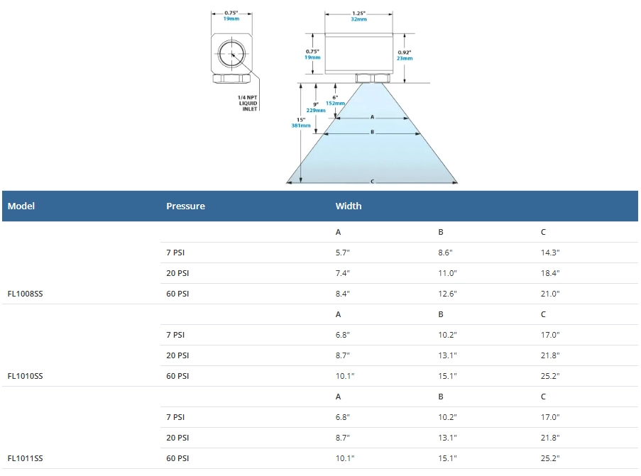 Fullstream Liquid Atomizing Nozzle. 4.2 LPM Liquid Capacity. 1/4" Female Thread.