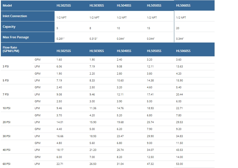 Connection: 1/2" BSP