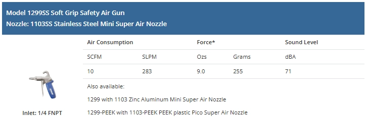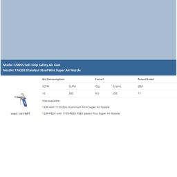 Soft Grip Safety Air Gun. Round Mini Air Nozzle. 316 Stainless Steel. Force 255g. 48" Extension and Chip Shield.