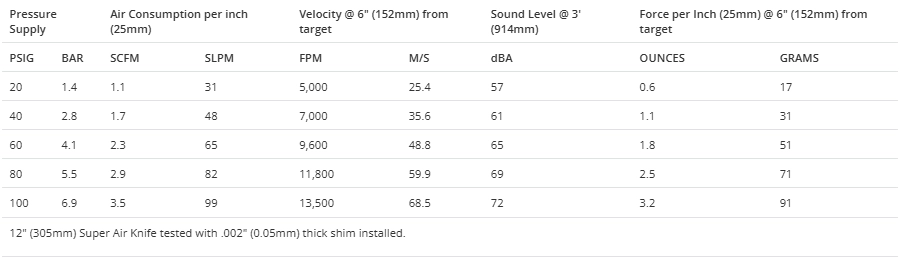 PVDF Super Air Knife. 3" Airflow Length. Includes Filter/Regulator & Shim Set.
